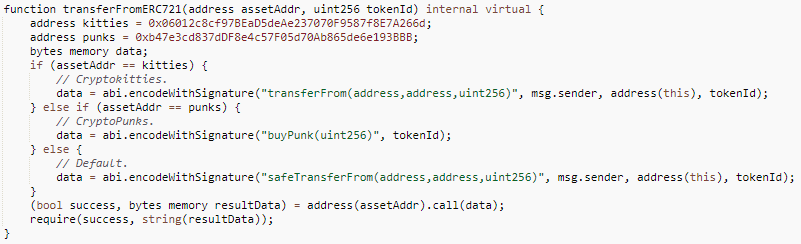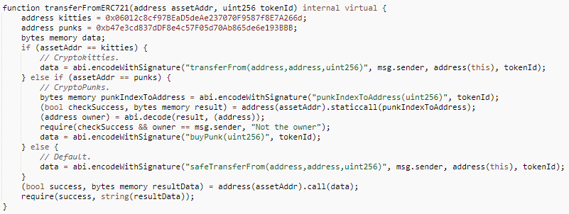 Due to some NFTs (CryptoPunks, Kitties) not being aligned with the ERC721 standard, we have implemented some unique logic for them.